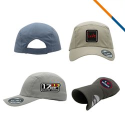 Experience the ultimate comfort with the Juniper® CoolHit Soft Brim 5 Panel Performance Cap! This 5 Panel Performance Cap is made with 100% nylon (white & slate blue with 100% polyester), and it features UV protection (UPF 50+) and is water repellent. The moisture-wicking sweatband can quickly absorb sweat to keep the head dry. Rollable brim ensures softness, and its slight shaping provides sun protection for the face and forehead. Hook and loop closure makes the cap adjustable and ensures a secure fit. Ideal for outdoor activities and trips. Imprint methods such as embroidered patch, 3D silicone, deal, and back flag label are available up on request.