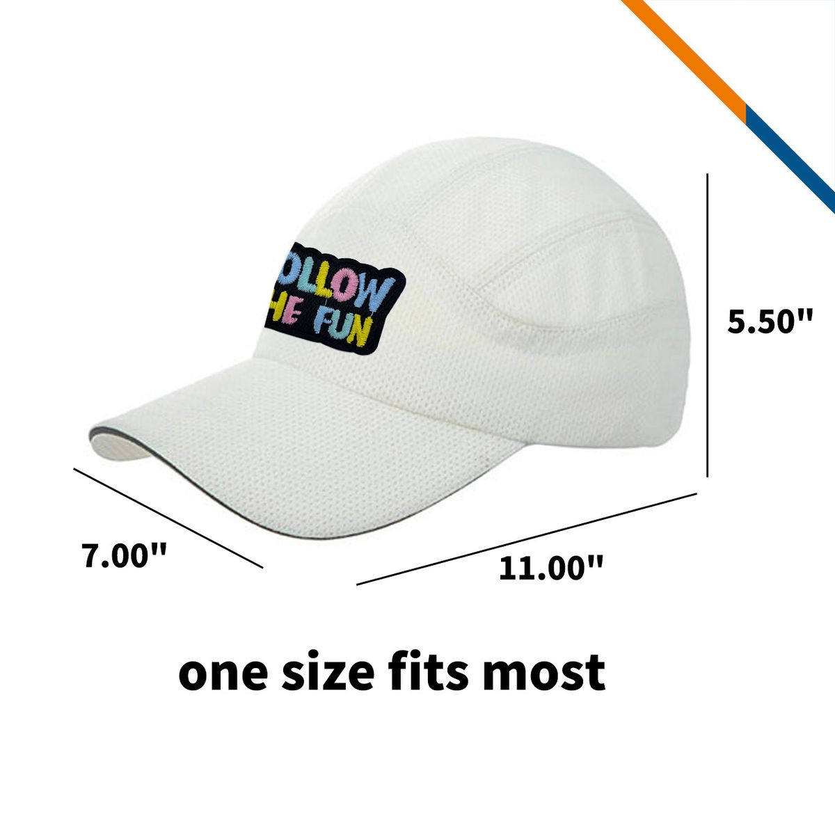 - Self-fabric with hook-and-loop closure allows the cap to be adjusted into multiple sizes.