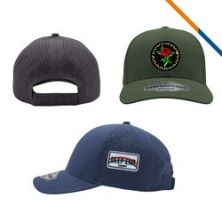 Elevate your everyday look with Breezr Perforated Performance Cap! This performance cap is a 6-panel mid-profile structured cap made with 100% polyester. Comes with fused buckram backing for structured shape and laser perforations on four back panels for improved breathability. A moisture-wicking sweatband keeps you dry and comfortable, and a self-fabric adjustable strap with low profile hook-and-loop closure ensures a customizable fit. With water-repellent fabric and UPF 50 UV protection to protect against sun and light rain. Perfect for daily commutes, outdoor workouts, or just running errands. Imprint methods such as embroidered patch, 3D silicone, deal, and back flag label are available up on request.