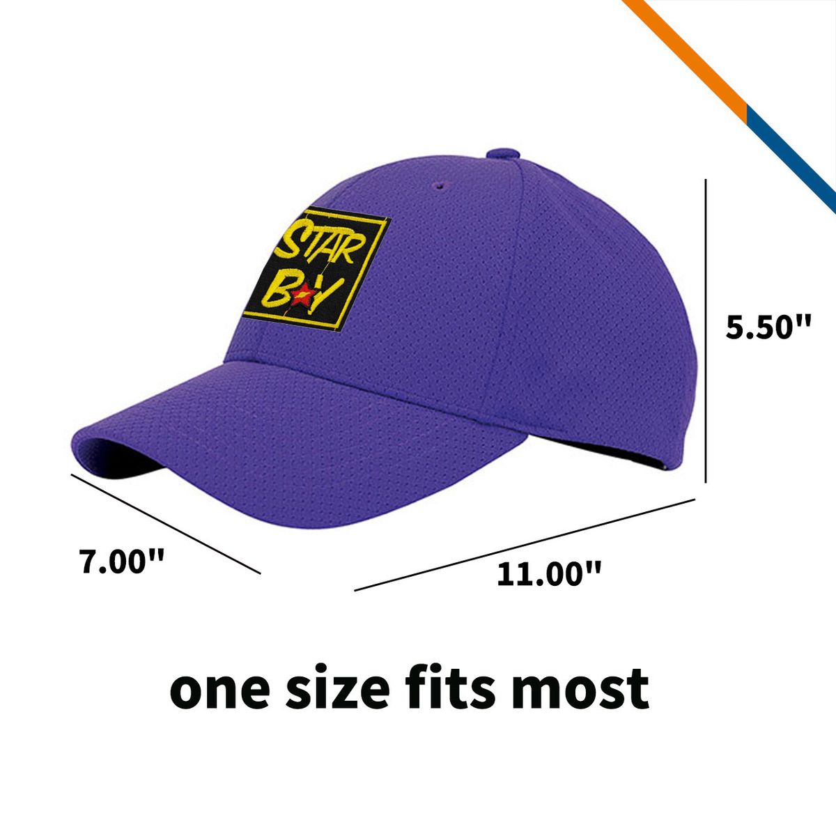 - Self-fabric strap with hook-and-loop closure allows for easy adjustment of the cap.